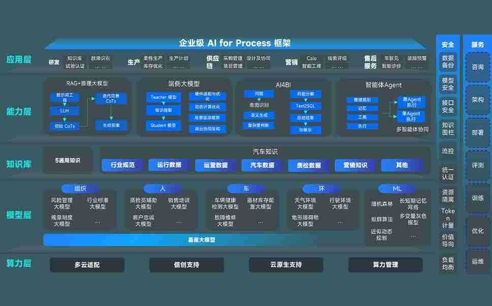 端到端的一站式AI工作空间深度融合了从企业战略规划到日常经营的全流程业务板块,,定向解决车企内部领域多、、、部门多、、链条长、、、场景碎片化等难题,,支持车企快速构建以AI为核心的生产力写作体系,,,实现任务执行与AI能力的无缝集成与交互